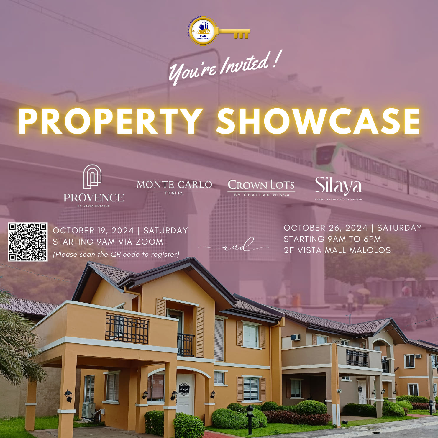 We’re excited to invite you to our exclusive Property Showcase on October 19, 2024 (Saturday), starting at 9:00 AM! Discover a range of exceptional properties in a virtual tour via Zoom.